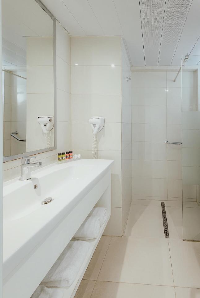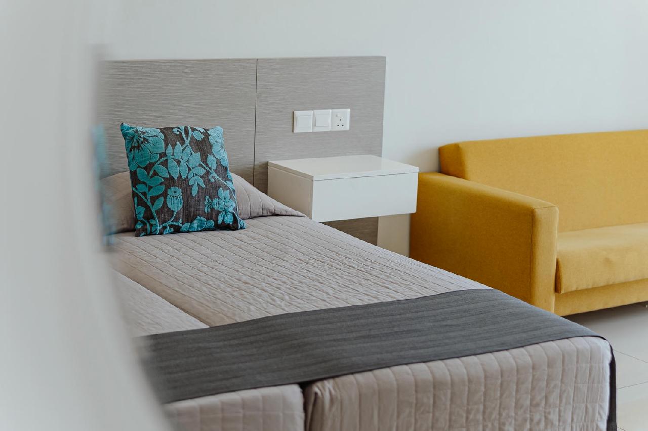 Szobák: minden szoba modern és kényelmes kialakítású, ízlésesen berendezett, egy hálószobás (~23 m2), légkondicionált, fürdőszobás, hajszárítóval, telefonnal, síkképernyős tv-vel és vízforralóval (tea és kávéfőzési lehetőség) felszerelt. Széf és minihűtő térítés ellenében bérelhető. A családi szoba hasonló stílusban és felszereltséggel berendezett, azonban alapterülete nagyobb (~32 m2),kifejezetten alkalmas többtagú családok számára (2 fő díványon). A standard szobákhoz szárazföldre, belső udvarra vagy medencére néző erkély, a családi szobákhoz pedig szárazföldre néző erkély tartozik.
