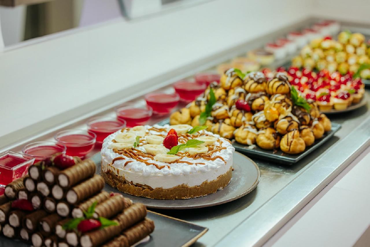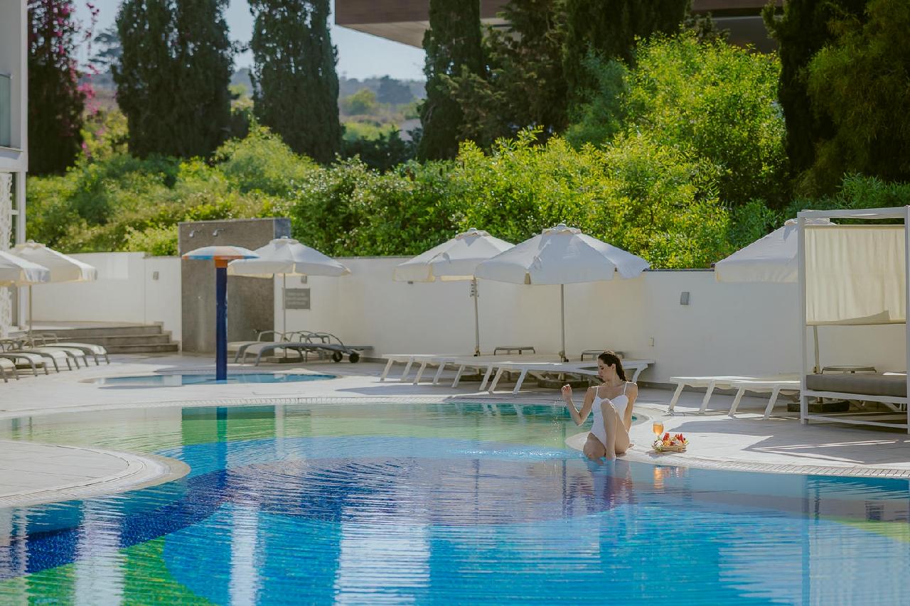 Étkezés: Félpanzió, büfé reggelivel és büfé vacsorával. A főétkezések során széles választék várja a vendégeket, beleértve a helyi ciprusi fogásokat és a nemzetközi konyha kedvenceit is. A vacsora friss salátákat, húsokat, halakat és tésztákat tartalmaz, kiegészítve különféle desszertekkel, helyi gyümölcsökkel és süteményekkel. Felár ellenében all inclusive ellátás foglalható, benne: reggeli, ebéd és vacsora, napközben snack ételek és szendvicsek, korlátlan italfogyasztás 10–23 óra között. Az italválaszték pohárban felszolgálva, a szálloda által meghatározott helyi és alkoholos és üdítőitalokra, vízre és gépi kávéra vonatkozik. Az import és palackozott italok fogyasztása térítéshez kötött