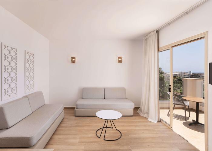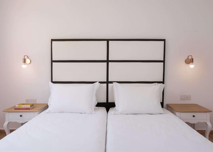 Szobák: minden standard stúdió (kb.30 m2) és családi apartman (kb.45 m2) a kerti épületekben található, szépen berendezett, légkondicionált, fürdőszobás, hajszárítóval, hűtővel, vízforralóval, síkképernyős tv-vel és telefonnal felszerelt. A családi apartmanok hasonlóan berendezettek, egy hálószobával és nappalival (kanapéágy) rendelkeznek. A szobához erkély vagy terasz tartozik, szárazföldi, kertre, oldal tengerre néző vagy tengerre néző kilátással. Szobaszéf térítés ellenében.