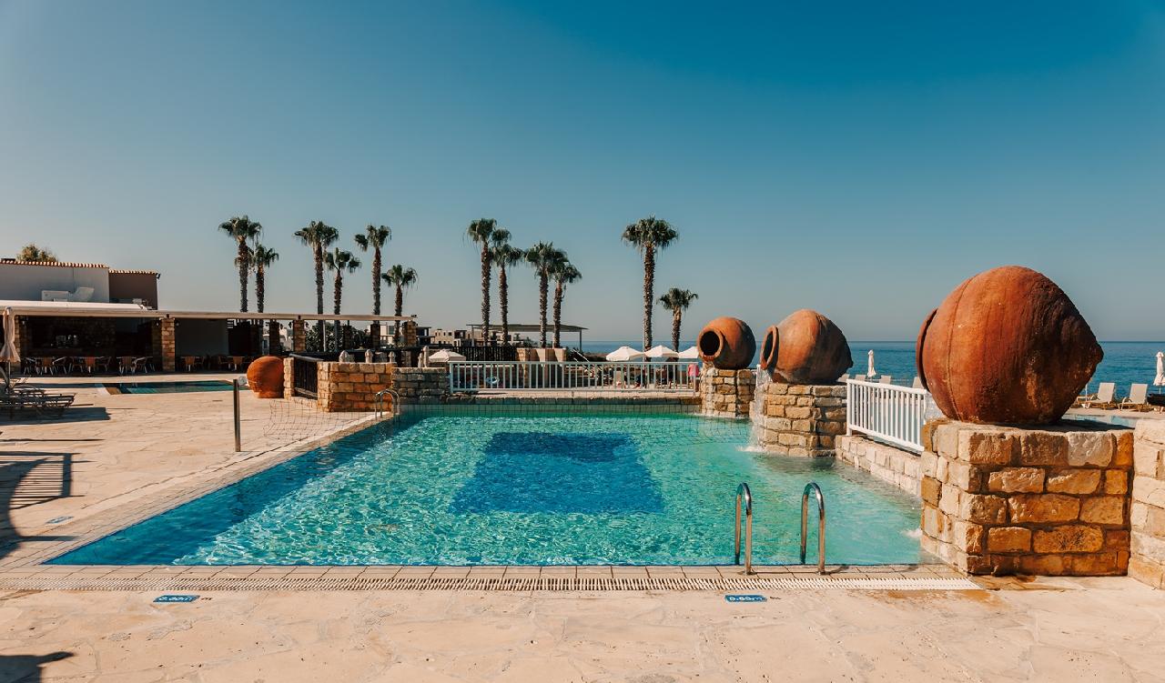 Szolgáltatások: recepció, étterem (a teraszról csodálatos tengeri kilátással), taverna, bár, medencebár, gyermekfelügyelet, internetezési lehetőség (ingyenes Wi-Fi a recepció és a medence környékén), parkoló, rendezvényszervezés (pl. esküvő), minimarket és ajándékbolt, strandtörülköző szerviz (letét ellenében). Paphos városközpontjában számtalan vásárlási és szórakozási lehetőségek közül választhatunk.