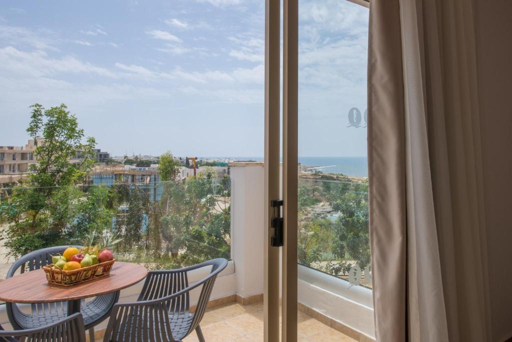 Étkezés: félpanzió, svédasztalos reggelivel (friss pékáruk, gyümölcsök, hideg és meleg ételek, tojásételek, sajtok, felvágottak, reggeli italok és gyümölcslevek) és büfé vacsorával. A vacsorára a helyi ciprusi specialitásoktól kezdve a mediterrán fogásokon át nemzetközi kedvenceket is felszolgálhatnak. Különleges étkezési igényekre, mint vegetáriánus vagy gluténmentes ételek, szintén rendelkezésre állnak. Felár ellenében all inclusive ellátás foglalható, benne: reggeli, ebéd és vacsora, széles ételválasztékkal. Napközben frissítő snackeket kínálnak, mint például könnyű harapnivalók, fagylaltok, sütemények és gyümölcsök, amelyek a medence melletti bárban érhetők el. Az all inclusive ellátás része a korlátlan alkoholos és alkoholmentes italok fogyasztása 10–24 óra között. A helyi borok, sörök, koktélok és frissítők egész nap rendelkezésre állnak. A bárban este koktélok, frissítő limonádék és különféle italok várják a vendégeket (az italválaszték a szállodai itallapon található „AL” jelzéssel).