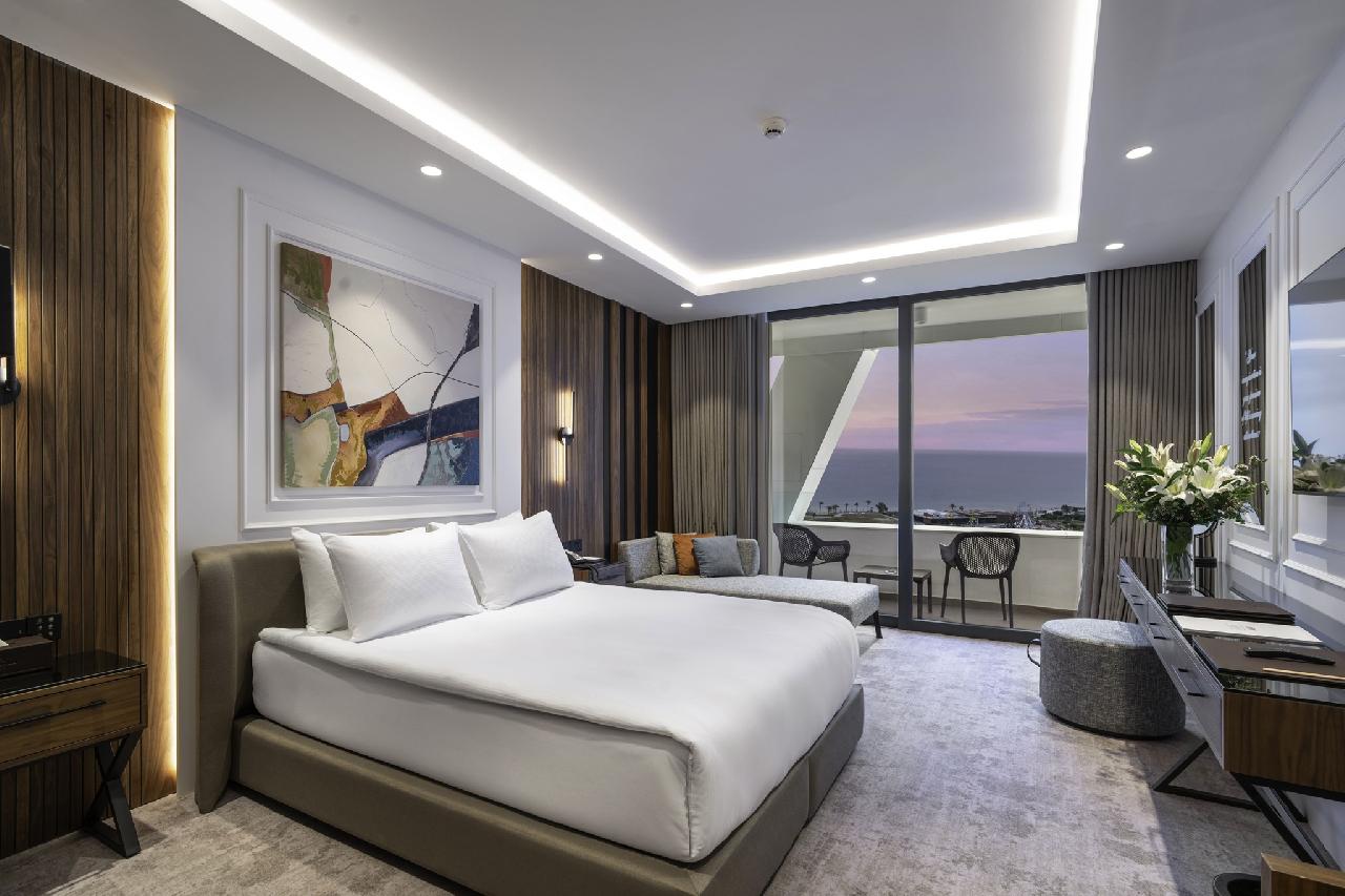 Szuperior szoba: a tágas elrendezésű (~30 m²) szobák a toronyépületek egyikében találhatók, lenyűgöző panorámát kínálnak a Földközi-tenger azúrkék árnyalataira, valamint az éjszakai fényekben táncoló medencére.Étkezés: Ultra all inclusive ellátással, benne: gazdag büféreggeli, büfé és büfé vacsora, napközbeni snackek (hamburger, pizza, gyros, sült ételek, péksütemények stb.), délutáni kávé, sütemény és fagylalt, korlátlan helyi alkoholos és alkoholmentes italok (több bár 24órás nyitvatartással), a szobákban a minibár napi feltöltése vízzel és üdítőkkel. Az à la carte éttermek térítés ellenében vagy előzetes foglalással látogathatók.