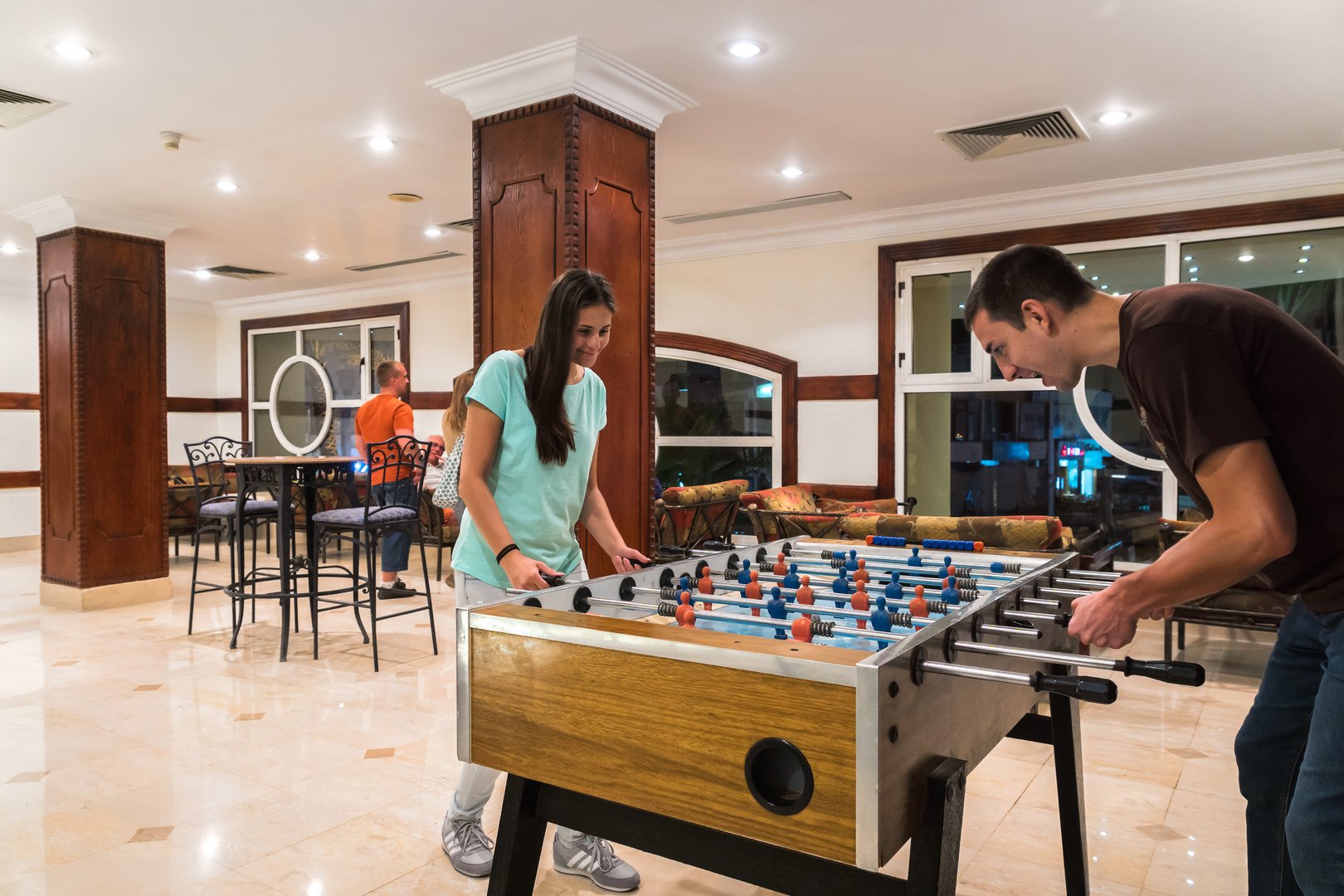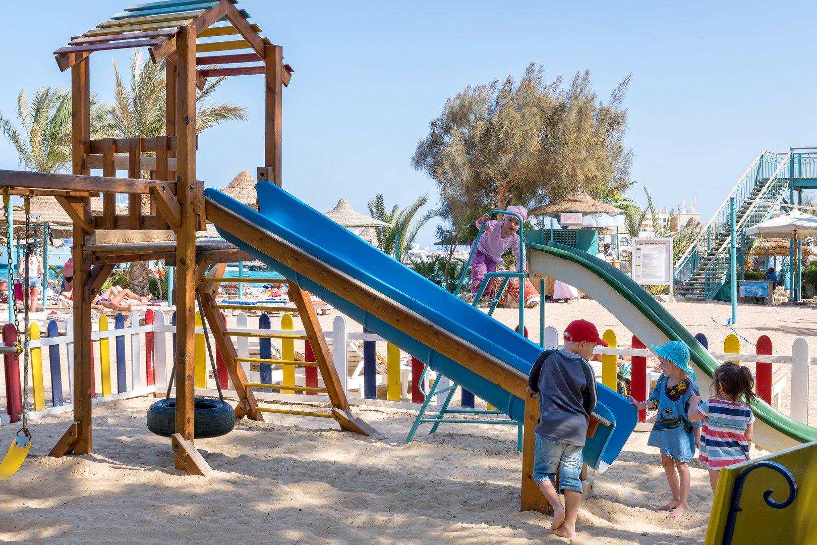 Saját strand,szezonálisan fűtött medence; beltéri és kültéri játszótér; orvosi ügyelet, recepció; napközben animáció, este zenés programok; konditerem, jacuzzi, masszázs (térítés ellenében); 4 étterem, 4 tematikus bár, napozóterasz.
