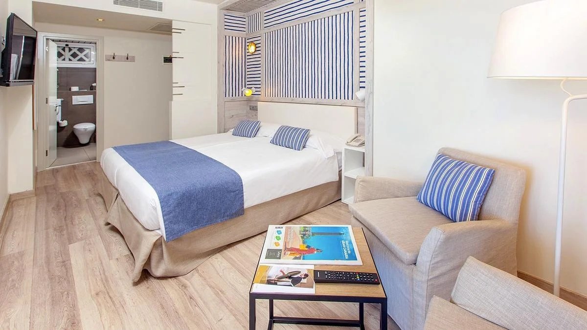 A szálloda közvetlenül a strandon helyezkedik el. A part homokos, sötétebb színű homokkal. A tengerbe való bejutás fokozatos és enyhe lejtésű. A strand a Kék Zászló minősítéssel rendelkezik. Napernyők és napágyak külön díj ellenében vehetők igénybe, kb. Playa del Inglés – Nyilvános strand