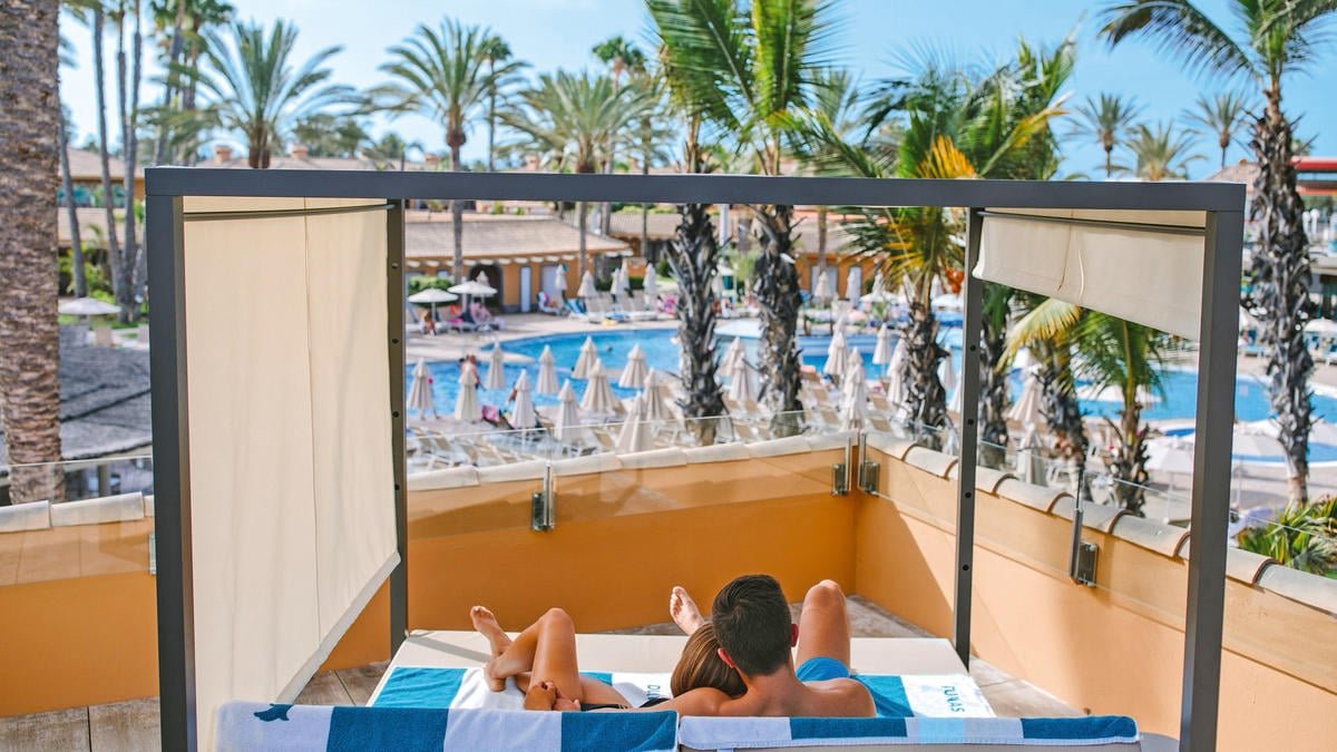 Maspalomas nyilvános, homokos strandja 2km-re található a hoteltől. A kék zászlós strand enyhe lejtőn keresztül érhető el, melyet a vendégek megközelíthetnek egyénileg, illetve napi 4 alkalommal a hotel transzferjával ingyenesen. Napernyők és napozóágyak bérelhetőek.