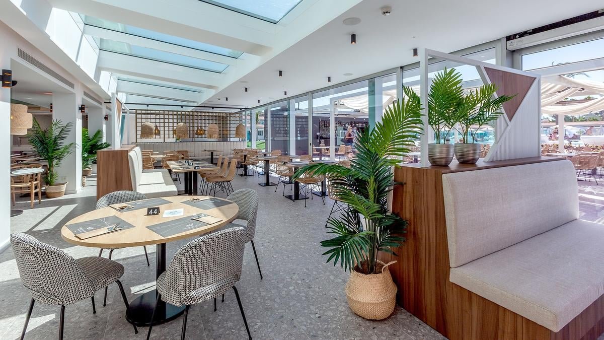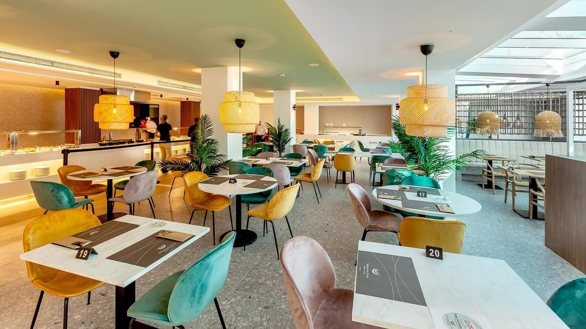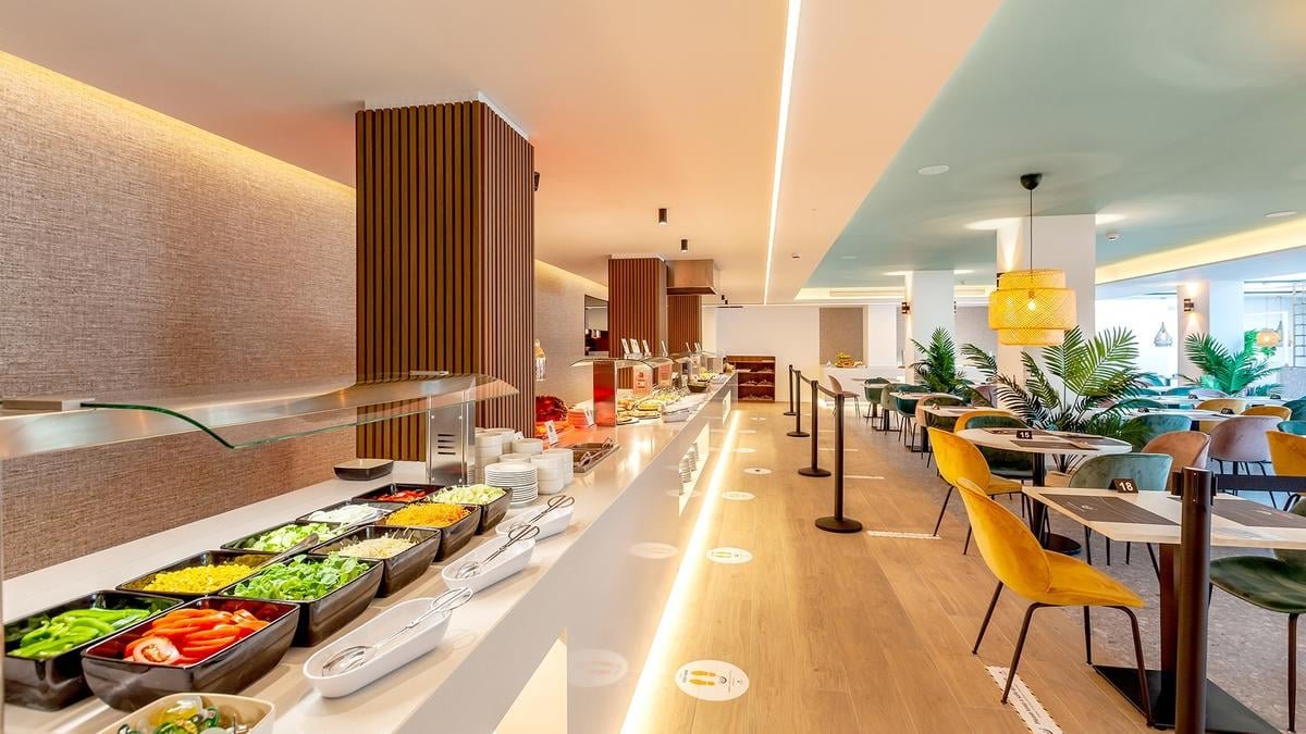 Büfé jellegű félpanzió, reggeli és vacsora. Az italok a vacsoránál térítés ellenében. Helyi és nemzetközi konyha, gyermekülés és gyermekmenü, vegetáriánus ételek 3 bár: a lobbyban, a medencénél és a felnőttek számára.